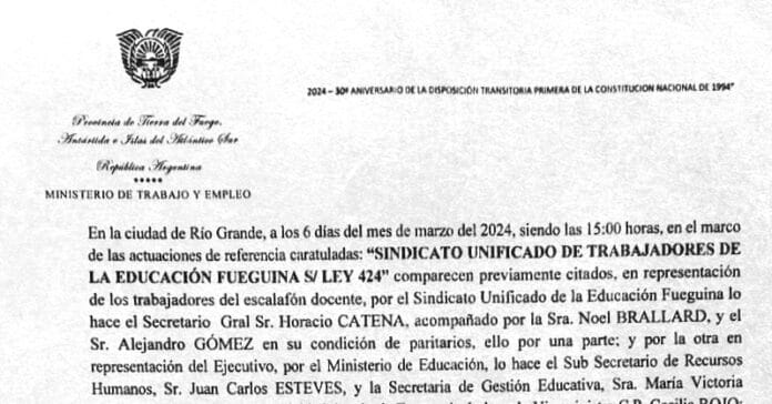 En el día de hoy se desarrolló una Mesa Paritaria Salarial en las instalaciones del Centro Cultural Yaganes de la ciudad de Río Grande, tal como se había comprometido el Ejecutivo producto de la lucha de la docencia fueguina que masivamente se volcó a las calles de la provincia y no inicio las clases el pasado 1 de marzo.