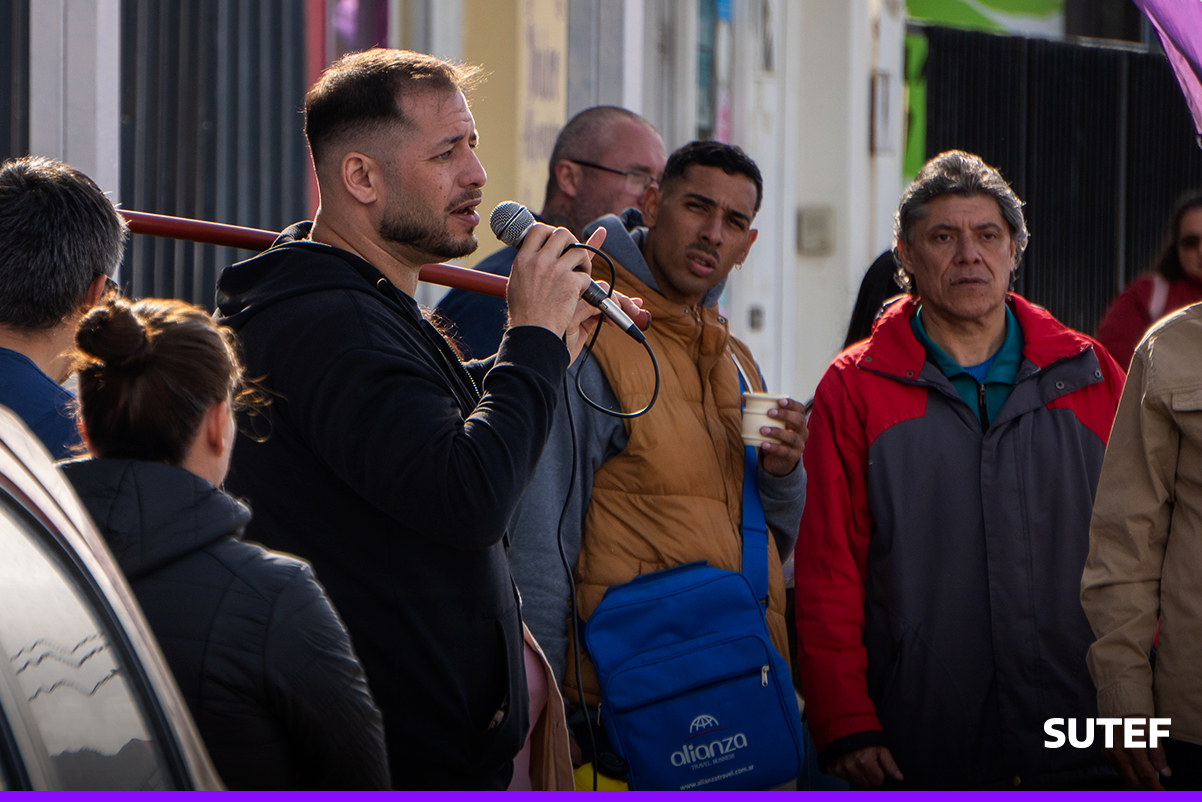 En una jornada marcada por un paro provincial con movilización, la docencia de Tierra del Fuego, Antártida e Islas del Atlántico Sur volvió a ocupar las calles el miércoles 11 de marzo. Tras el encuentro mantenido con el gobernador Gustavo Melella, del cual participaron diversos sindicatos estatales, el secretario general del SUTEF, Horacio Catena, se expresó frente a Casa de Gobierno en Ushuaia.