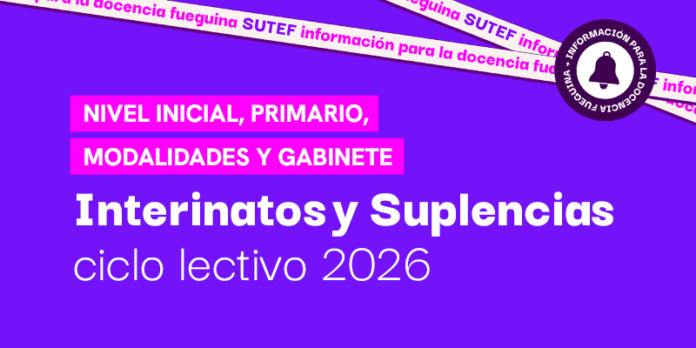 Las vocales de SUTEF en la Junta de Clasificación y Disciplina de N. Inicial, Primario, Modalidades y Personal de Gabinete informan que se encuentra abierta la inscripción al listado de Interinatos y Suplencias Ciclo Lectivo 2026, Resolución M.ED. 0554/2025.