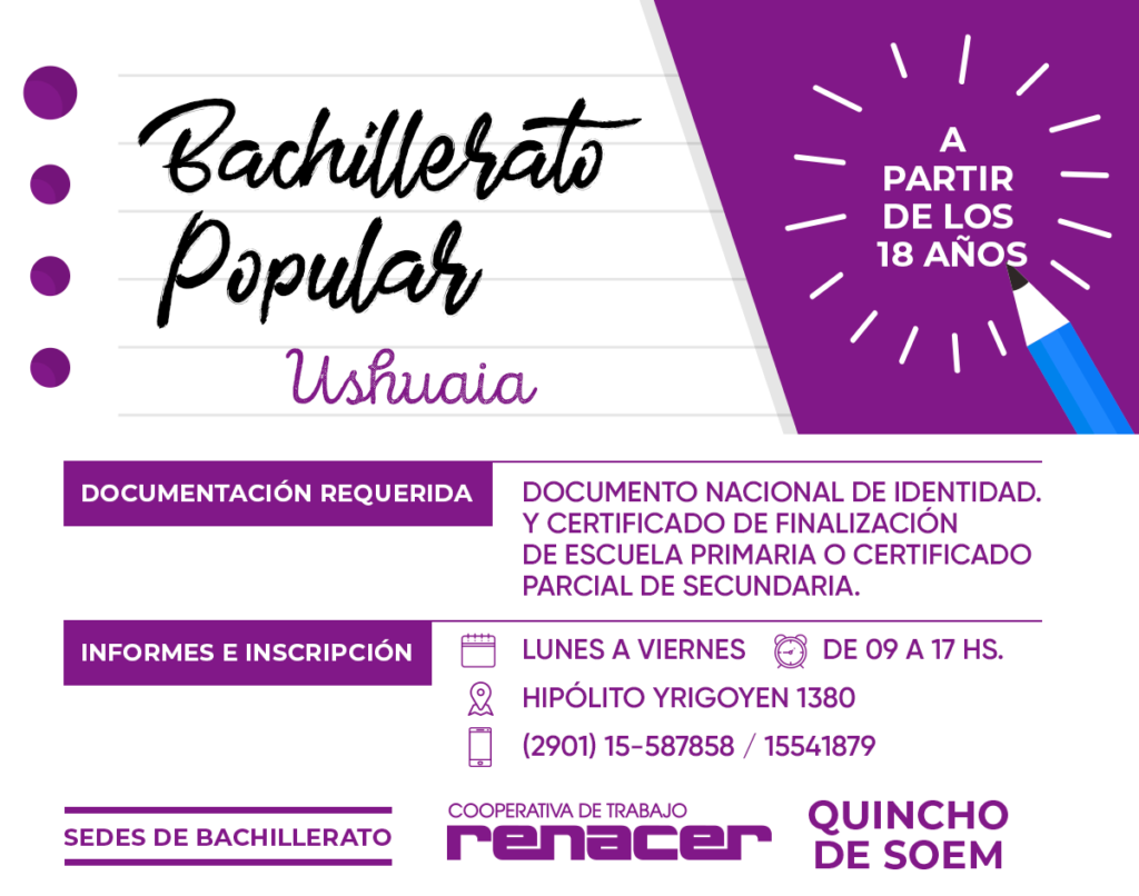 EducaciónBachilleratos PopularesInscripciones abiertas para los Bachilleratos Populares de Río Grande, Tolhuin y Ushuaia Inscripciones abiertas para los Bachilleratos Populares de Río Grande, Tolhuin y Ushuaia publicado el 6 marzo, 2020 FacebookTwitterPinterestWhatsAppEmailImpresiónTelegramCopy URL Se encuentran abiertas las inscripciones para los Bachilleratos Populares en las tres ciudades. Últimos artículos IX Congreso Pedagógico Provincial Panel «La escuela que queremos: participación y poder en el Sistema Educativo» En el marco del IX Congreso Provincial de Educación Pública y Popular del Sindicato... 19 noviembre, 2025 Comunicados e informes SUTEF expresa su enérgico repudio a la persecución del gobierno nacional contra el secretario general de ATE Nacional Desde el Sindicato Unificado de Trabajadoras y Trabajadores de la Educación Fueguina (SUTEF) expresamos... 19 noviembre, 2025 Más publicaciones Bachilleratos Populares ¡Se llevó adelante la EXPO ESI en toda la provincia! Los días lunes 7, martes 8 y miércoles 9 de octubre, SUTEF llevó adelante... 15 octubre, 2024 Bachilleratos Populares Terminá el secundario en los Bachilleratos Populares 🎓 Los Bachilleratos Populares son una propuesta educativa gratuita y con título oficial para... 28 febrero, 2024 Bachilleratos Populares XX Curso Taller Internacional del Educador Popular y el XII Seminario Internacional de la RIOSAL-CLACSO Los Bachilleratos Populares de Tierra del Fuego AeIAS y la Red de Investigadores y... 5 agosto, 2023
