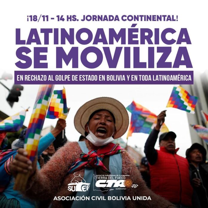 Derechos HumanosConvocatoriasJornada Continental Latinoamérica se moviliza Jornada Continental Latinoamérica se moviliza publicado el 17 noviembre, 2019 FacebookTwitterPinterestWhatsAppEmailImpresiónTelegramCopy URL En Ushuaia en Onas y San Martín nos movilizamos en rechazo al Golpe de Estado en Bolivia y en toda Latinoamérica. 🗓 Lunes 18 de noviembre a las 14 hs. 📣 En todos los países de América Latina, el mismo día, a la misma hora.#GolpeDeEstadoEnBolivia Últimos artículos Educación Modelos de transformación educativa: reformismo vs. paradigmático La transformación educativa se puede clasificar en dos modelos principales: reformista y paradigmático. 1. Modelo... 11 diciembre, 2025 Comunicados e informes Concluyó el programa de «Jóvenes y Memoria: Construyendo la Esperanza» en Tierra del Fuego AeIAS Se llevó adelante el encuentro de cierre del Programa “Jóvenes y Memoria: Construyendo la... 11 diciembre, 2025 Más publicaciones Convocatorias Presentación del libro en Ushuaia “Olvidar es imposible”, de Sergio Maldonado Desde el Sindicato Unificado de Trabajadoras y Trabajadores de la Educación Fueguina (SUTEF) invitamos... 16 septiembre, 2025 Convocatorias Cambio de sede del Seminario en Ushuaia ❗ CAMBIO DE SEDE EN USHUAIA ➡️ Debido a problemas ajenos a nuestra organización del... 30 junio, 2025 Comunicados e informes Sedes del II Seminario didáctico Fueguino sobre Pedagogía de la Memoria El II Seminario Didáctico Fueguino sobre Pedagogía de la Memoria "Mirar Malvinas es construir... 29 junio, 2025