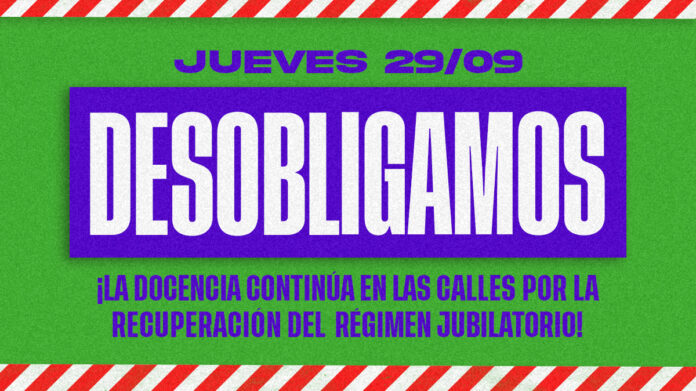 📣 Desobligaciones el jueves 29 y viernes 30 de septiembre por la recuperación de nuestro régimen jubilatorio.