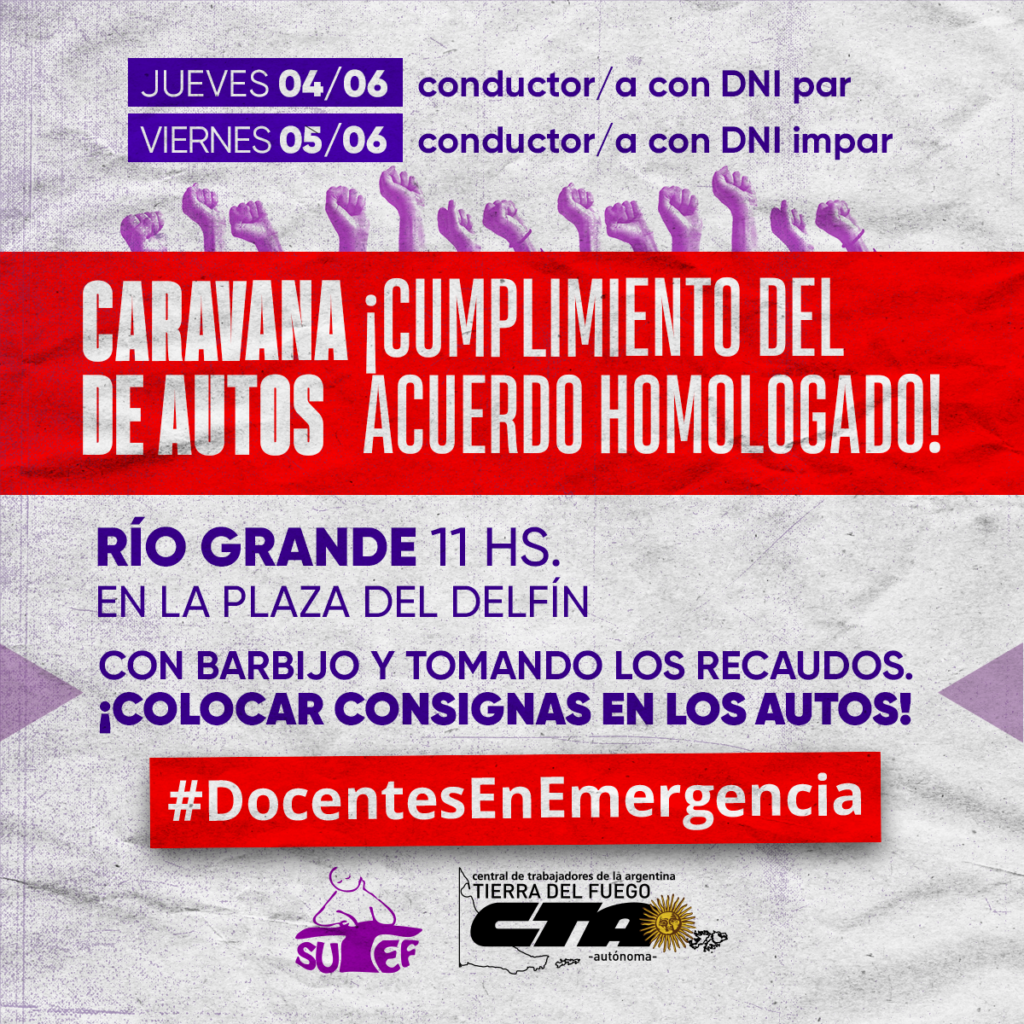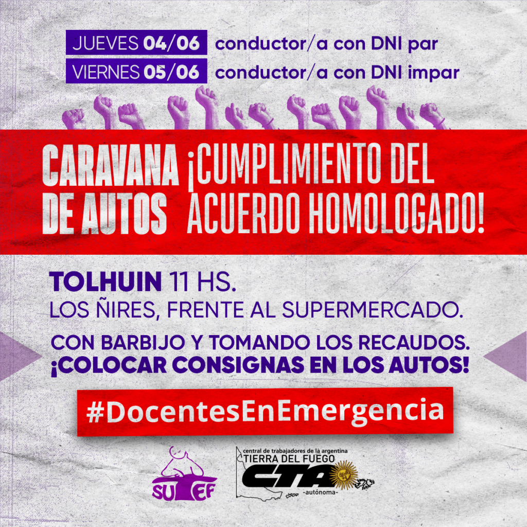 🗓 Jueves 4 y viernes 5 de junio realizaremos caravanas de autos a partir de las 11 hs.🕰️