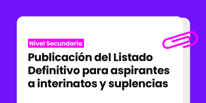 Las vocales representantes del SUTEF en la Junta de Clasificación y Disciplina del Nivel Secundario informan que en el transcurso del día 2 de marzo del 2026 se realizará la publicación del listado definitivo para aspirantes a Interinatos y Suplencias Ciclo Lectivo 2026, ingresando en el siguiente enlace: