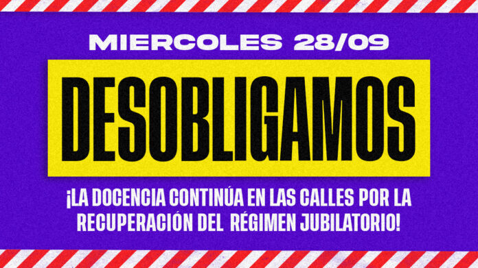 📣 Desobligaciones el 28, 29 y 30 de septiembre por la recuperación de nuestro régimen jubilatorio.