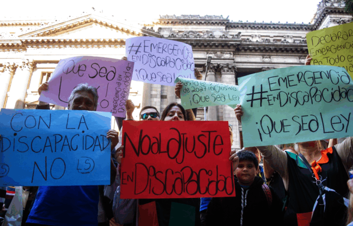 El 29 de mayo, las personas con discapacidad junto a sus familias se movilizaron al Congreso de la Nación junto a otras áreas como Salud, que también están sufriendo recortes, en reclamo de la Ley de Emergencia en Discapacidad para poner un freno a los recortes y el acceso a prestaciones esenciales para las PCD.