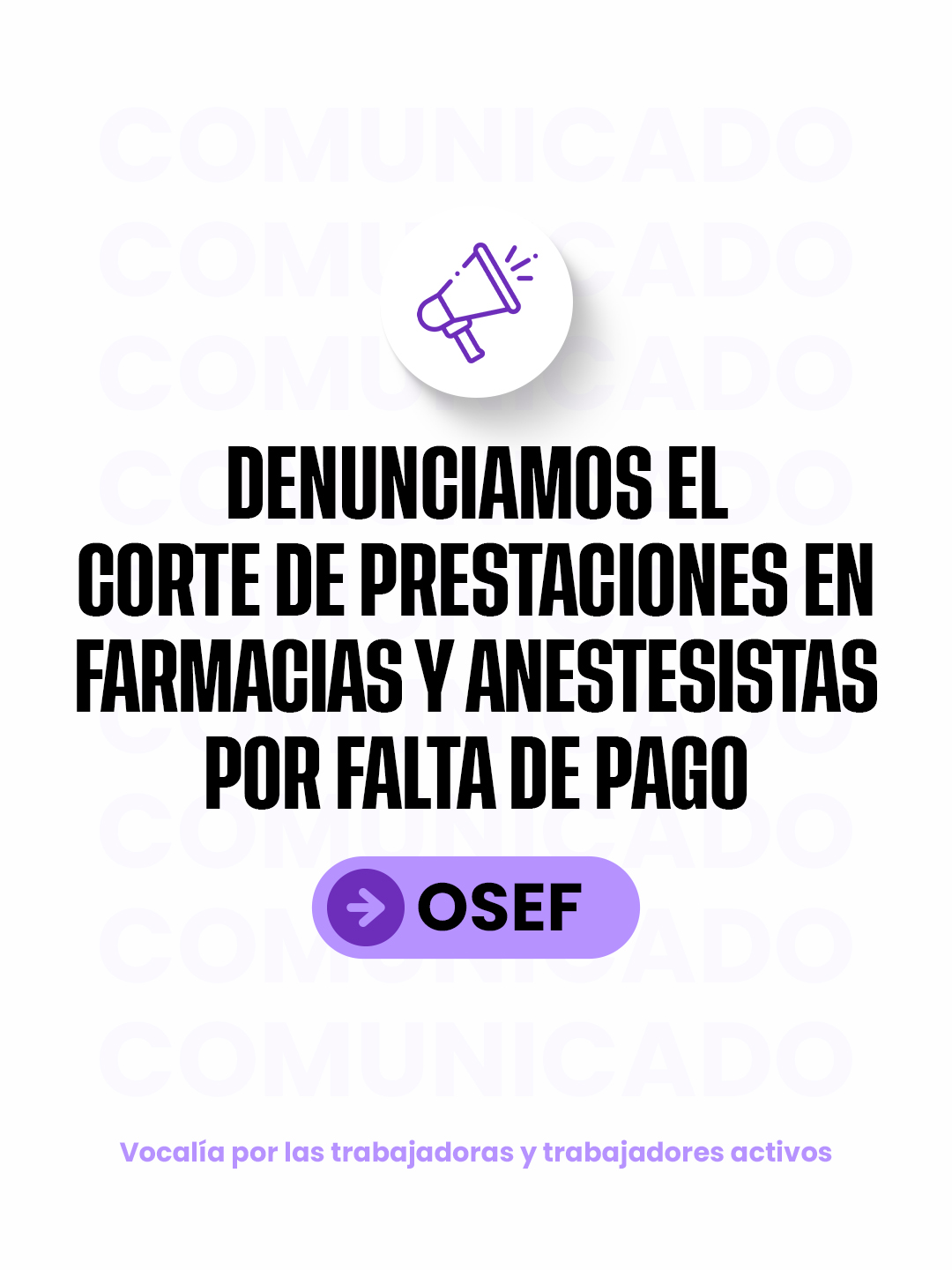 Desde la Vocalía por el sector activo de OSEF, informamos que se elevó ante la presidenta Mariana Hruby y el vicepresidente Gustavo García una notificación formal de extrema gravedad por el corte inminente de servicios vitales que afecta a nuestras afiliadas y afiliados.