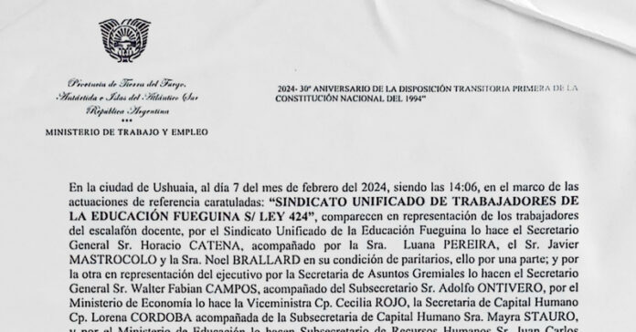 Para concluir, desde el SUTEF se manifestó que no se permitirá que en la próxima Mesa Paritaria Salarial estén presentes personas ajenas que no se encuentran comprendidas en la Ley Provincial de Paritarias Nro. 424, y se respetará lo que dice la ley en todo concepto a partir del día de la fecha.