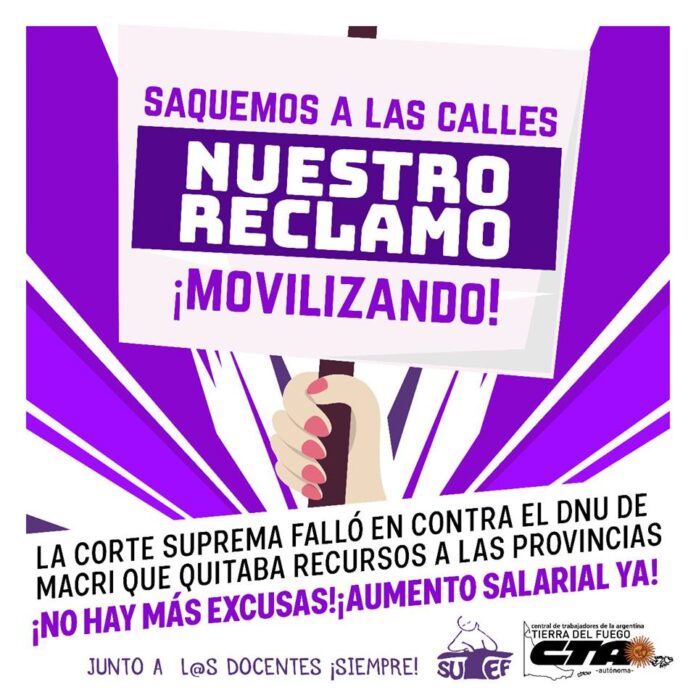 Consultaremos en las escuelas para impulsar una movilización y otras acciones gremiales. Saquemos el reclamo a las calles. Ya no hay excusas. La Corte Suprema de la Nación falló contra el DNU de Macri que quitaba recursos a las Provincias de IVA e impuestos a las ganancias. El Gobierno nacional NO puede afectar los fondos de coparticipación que reciben las Provincias.