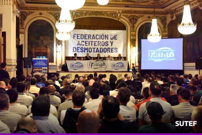 Representantes de SUTEF participaron del 14° Plenario Nacional de Delegados y Delegadas de base de la Federación de Trabajadores del Complejo Industrial Oleaginoso, Desmotadores de Algodón y Afines de la República Argentina (FTCIODyARA), que se llevó adelante el 13 y 14 de mayo en la Ciudad Autónoma de Buenos Aires.