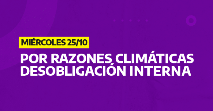 ❗ Debido a las condiciones climáticas las desobligaciones con movilización turno mañana, tarde y vespertino previstas para el 25/10 cambian su modalidad a desobligaciones internas.