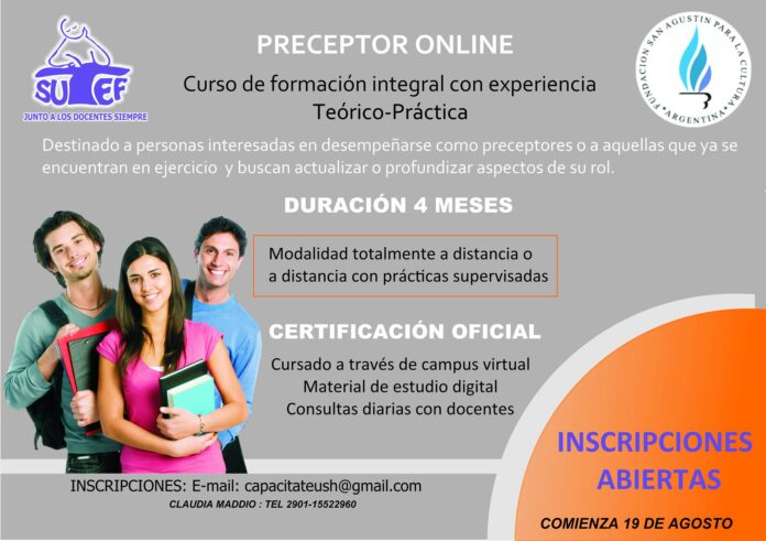 EducaciónFormaciónPreceptor: curso de formación online Preceptor: curso de formación online publicado el 31 julio, 2015 FacebookTwitterPinterestWhatsAppEmailImpresiónTelegramCopy URL Curso para preceptores en SUTEF con certificación oficial. Es «on line» y dura 4 meses. Las clases comienzan el 19 de agosto. Anotarse con tiempo. Últimos artículos Junta de Clasificación y Disciplina Nivel Inicial - Primario - Modalidades - Gabinete Vocales del SUTEF denuncian grave situación en la Junta de Clasificación: suspensión del servicio de gas afecta funciones esenciales ⚠️ Las vocales de SUTEF en la Junta de Clasificación y Disciplina de Nivel... 12 diciembre, 2025 Educación Modelos de transformación educativa: reformismo vs. paradigmático La transformación educativa se puede clasificar en dos modelos principales: reformista y paradigmático. 1. Modelo... 11 diciembre, 2025 Más publicaciones Formación Finalizó el primer ciclo de formación ‘Cuestión Malvinas – Programa de capacitación docente’ El pasado sábado 1 de noviembre se llevó a cabo el último encuentro de... 13 noviembre, 2025 Formación Capacitación docente «Accesibilidad e Inclusión: un binomio inseparable para la equidad educativa» Invitamos a la docencia de todas las áreas, niveles y modalidades de Tierra del... 27 octubre, 2025 Comunicados e informes Cuestión Malvinas – Programa de capacitación docente Desde el Sindicato Unificado de las Trabajadoras y Trabajadores de la Educación Fueguina (SUTEF)invitamos... 4 septiembre, 2025