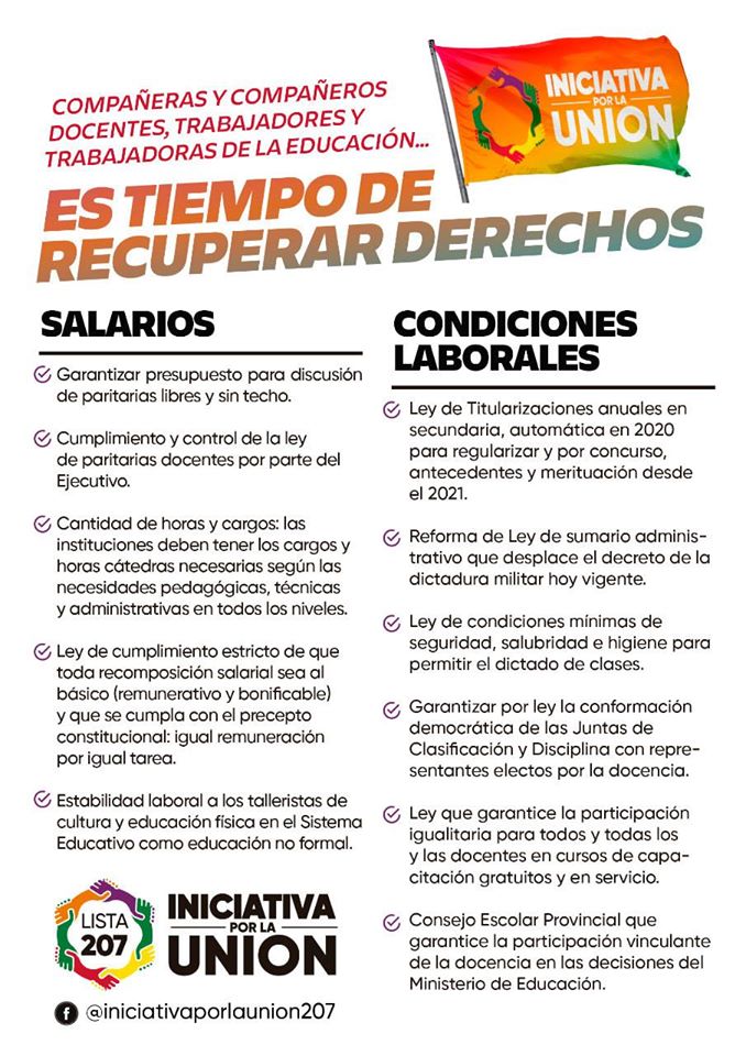 NoticiasPropuestas de Iniciativa por la Unión para la docencia Fueguina Propuestas de Iniciativa por la Unión para la docencia Fueguina publicado el 12 junio, 2019 FacebookXPinterestWhatsAppEmailImpresiónTelegramCopy URL Llevemos a la docencia a la Legislatura Provincial, lugar clave para generar mejores condiciones para estudiantes y docentes. El 16 de junio tenemos una cita histórica. Últimos artículos Convocatorias Agenda gremial de la docencia fueguina del 16 al 20 de marzo Este jueves 12 de marzo se llevó adelante el congreso provincial virtual con la... 13 marzo, 2026 Junta de Clasificación y Disciplina Nivel Inicial - Primario - Modalidades - Gabinete Falta de garantías y demoras injustificadas en el cronograma de inscripciones 2026 Las vocales representantes de los docentes informamos que, al día de la fecha, esta... 13 marzo, 2026 Más publicaciones Noticias Se conformó el Frente Nacional Democrático por la Educación Pública En un contexto de crisis educativa y laboral, se llevó a cabo el primer... 15 diciembre, 2025 Noticias SUTEF denuncia falta de instrumento legal y exige al Ministro garantías laborales para el Jardín nro. 27 El pasado martes 21 de octubre, el Sindicato Unificado de las Trabajadoras y Trabajadores... 27 octubre, 2025 Noticias Agenda gremial ️ Lunes 8 y martes 9 de septiembre Asamblea o desobligación interna en los tres... 8 septiembre, 2025