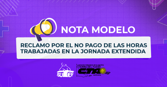 El pasado 11 de octubre, ante la falta de liquidación en los recibos de haberes de determinado grupo de docentes de las horas laboradas por Jornada Extendida, SUTEF solicitó al Ministerio de Educación la regularización y el pago de las horas trabajadas y devengadas en el plazo de cinco días.