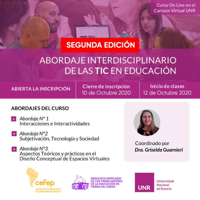 Ante la necesidad manifestada por los compañeros y compañeras docentes, desde el SUTEF, el CeFEP y la UNR iniciamos la preinscripción a la Segunda Edición del curso virtual: «Abordaje Interdisciplinario de las TIC en Educación».