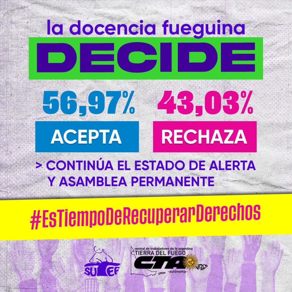 De un total de 172 mandatos hubo 98 (56.97%) que resultaron por la aceptación y 74 mandatos (43.03%) plantearon rechazar la propuesta salarial del Ejecutivo.