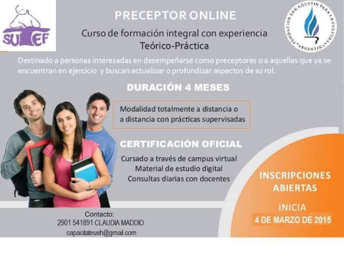 NoticiasFormaciónSe encuentra abierta la inscripción para el curso Preceptor online Se encuentra abierta la inscripción para el curso Preceptor online publicado el 18 febrero, 2015 FacebookTwitterPinterestWhatsAppEmailImpresiónTelegramCopy URL Últimos artículos Seguridad Social 07/11 Elecciones obligatorias de la Caja de Previsión Social y OSEF 🗓️ Viernes 7 de noviembre ⏰ De 8.00 y 18.00 hs. 🖥️ Consultá el padrón... 3 noviembre, 2025 Acción Social Hay que defender los derechos conseguidos, garantizar su cumplimiento y avanzar por más https://youtube.com/shorts/7G5C1QKJF90?feature=share 🗓 Un lunes 31 de octubre de 2022, producto de una larga lucha colectiva,... 3 noviembre, 2025 Más publicaciones Formación Último encuentro de la capacitación CUESTIÓN MALVINAS 🗓️ El próximo sábado 1 de noviembre se llevará adelante el último encuentro de... 29 octubre, 2025 Formación Capacitación docente «Accesibilidad e Inclusión: un binomio inseparable para la equidad educativa» Invitamos a la docencia de todas las áreas, niveles y modalidades de Tierra del... 27 octubre, 2025 Formación Cuarto encuentro de la capacitación CUESTIÓN MALVINAS El próximo sábado 18 de octubre se llevará adelante el tercer encuentro de "Cuestión... 16 octubre, 2025