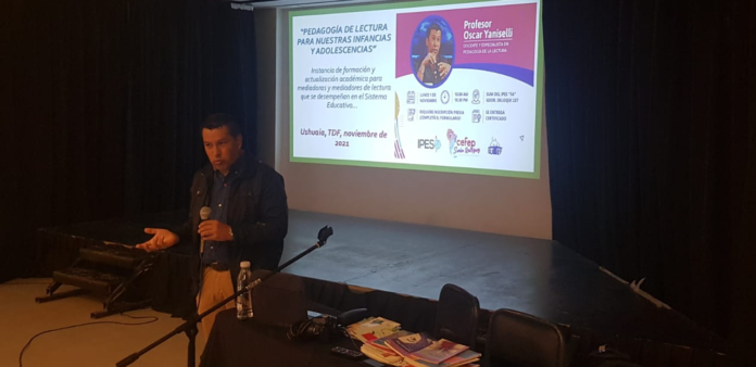Por primera vez el Profesor Oscar Yaniselli, desembarcó en la ciudad de Ushuaia para participar de dos encuentros -uno por la mañana y otro en el turno vespertino- con nutrida concurrencia de docentes y estudiantes del IPES FA, con quienes abordó y reflexionó acerca de la Pedagogía de la Lectura.