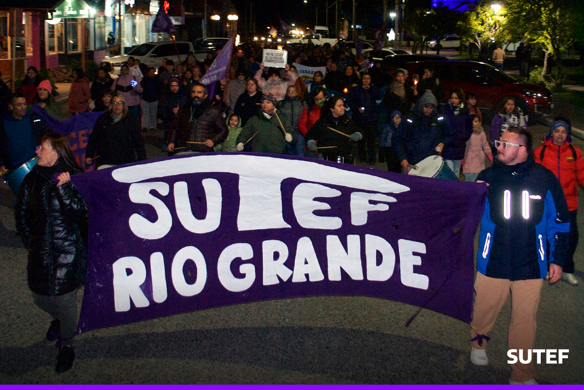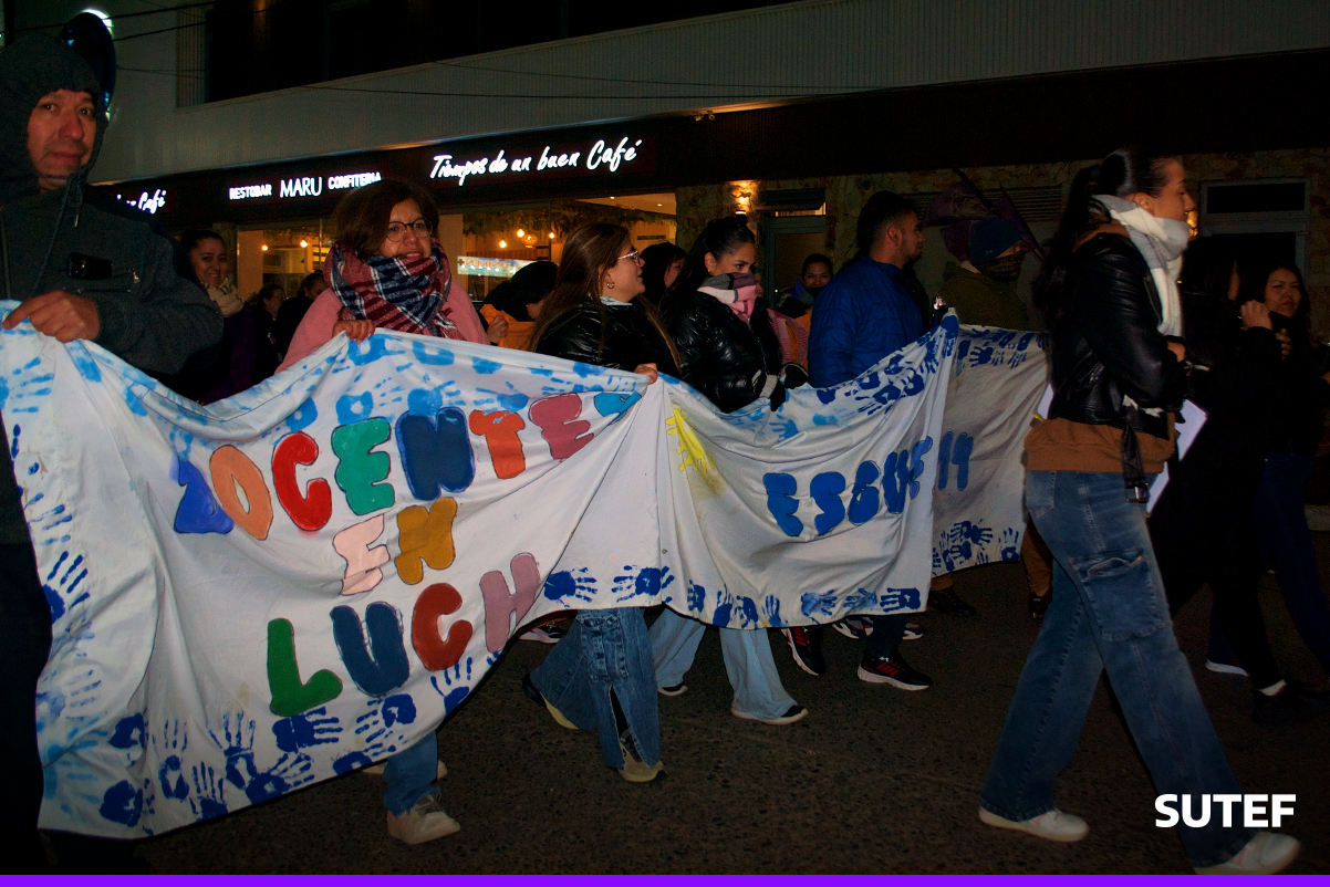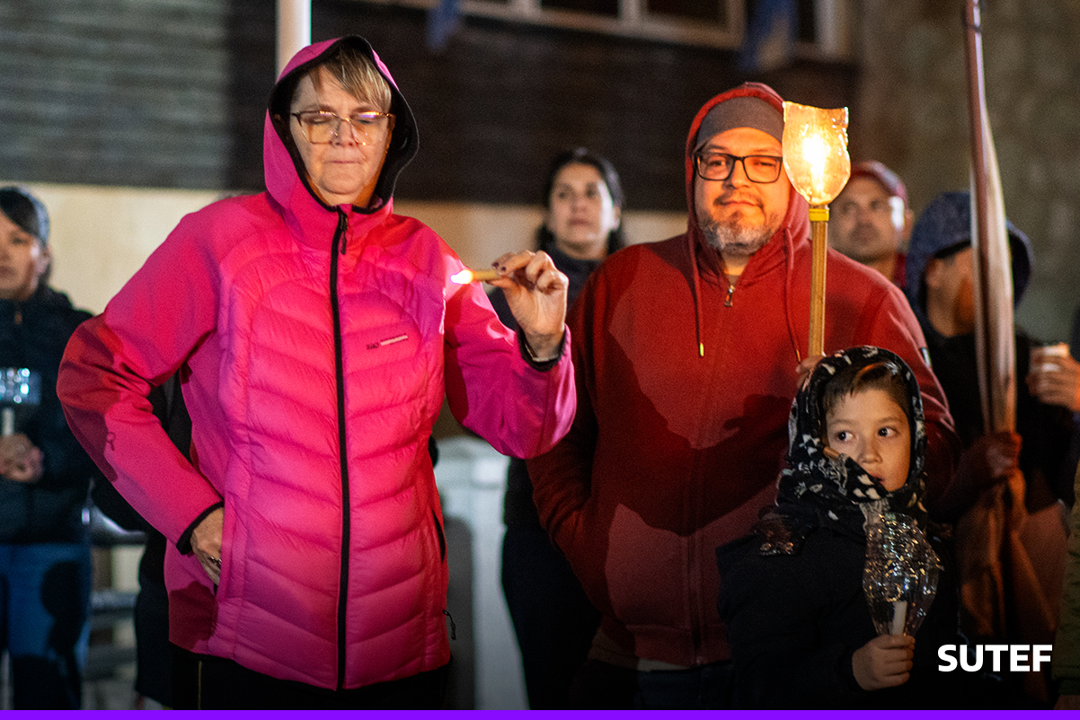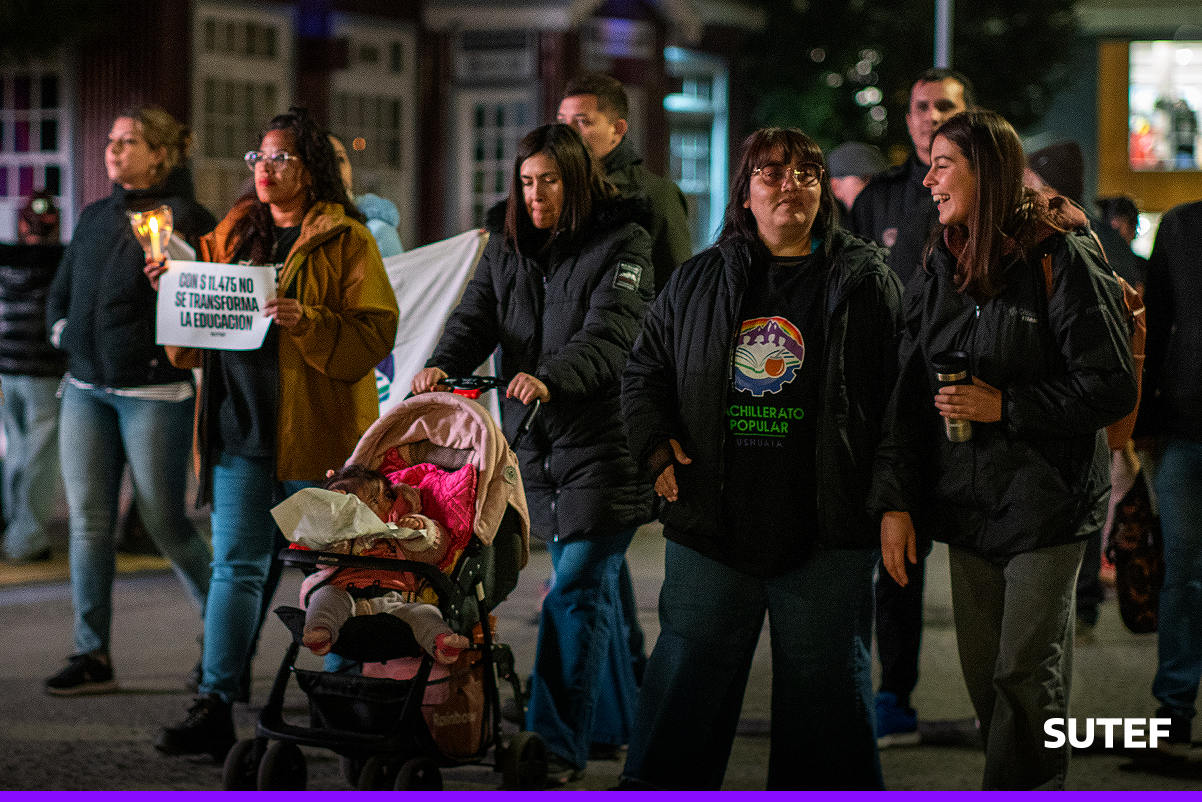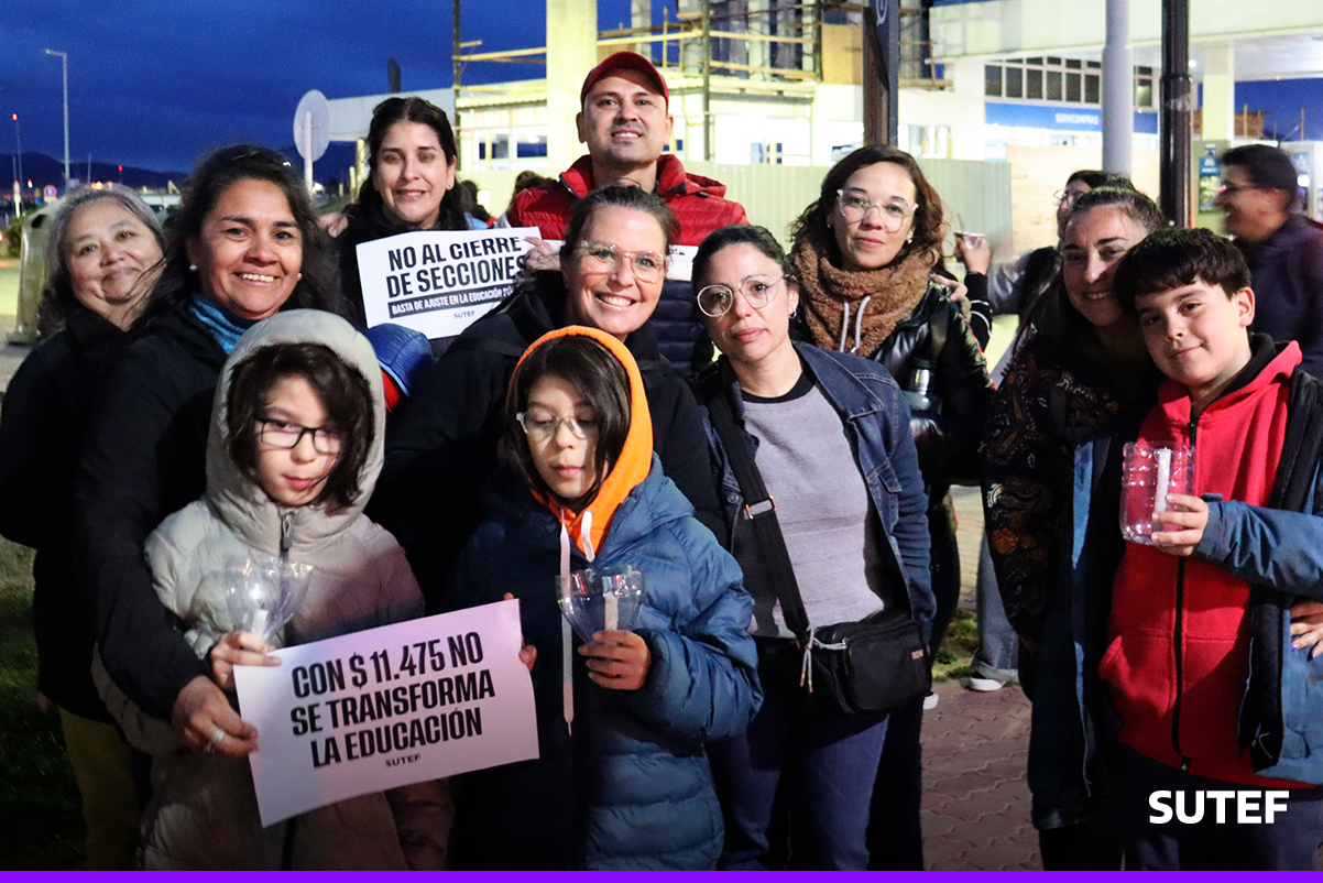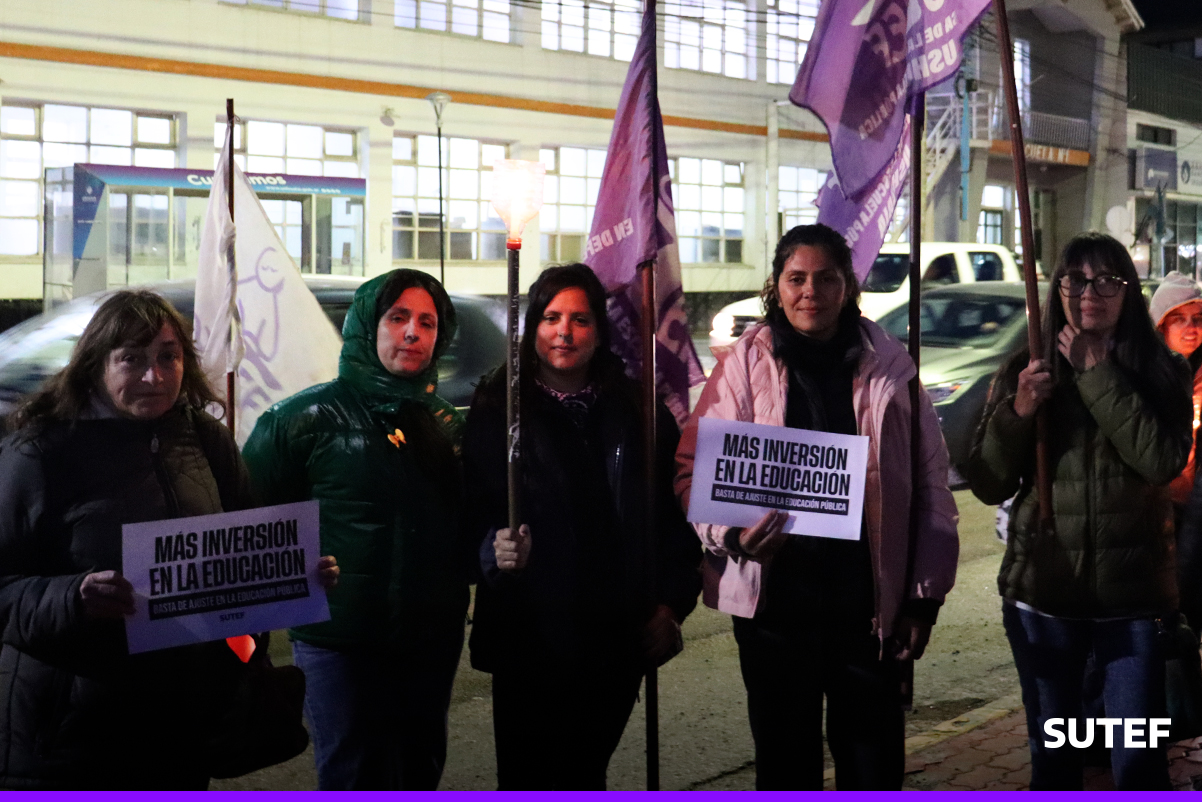 En la noche del viernes 13 de marzo, la docencia fueguina volvió a manifestarse en Río Grande, Tolhuin y Ushuaia con carteles, antorchas, batucada y acompañados de familias.