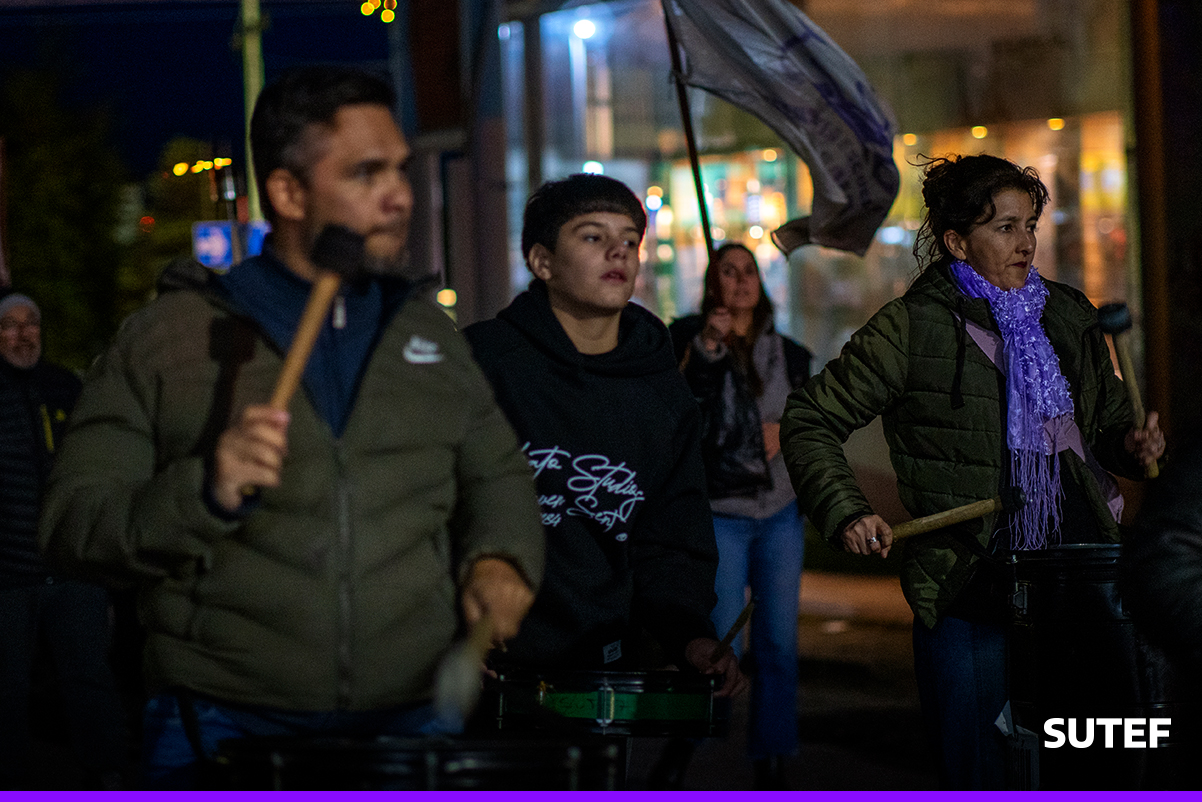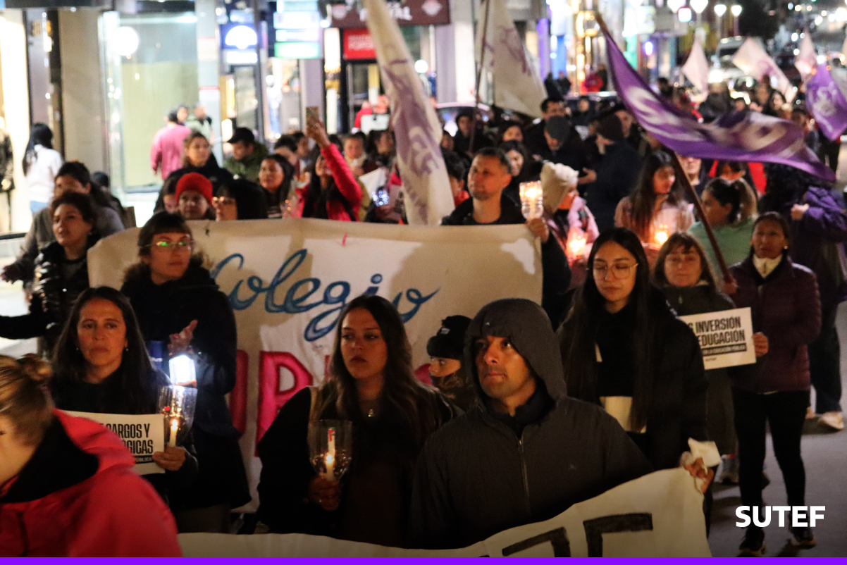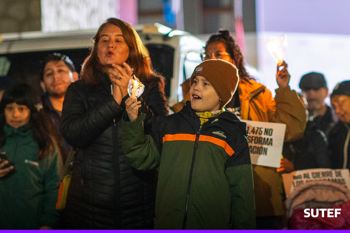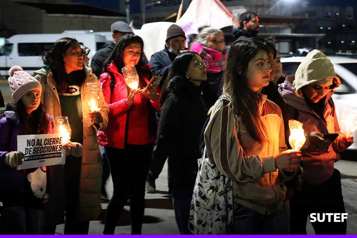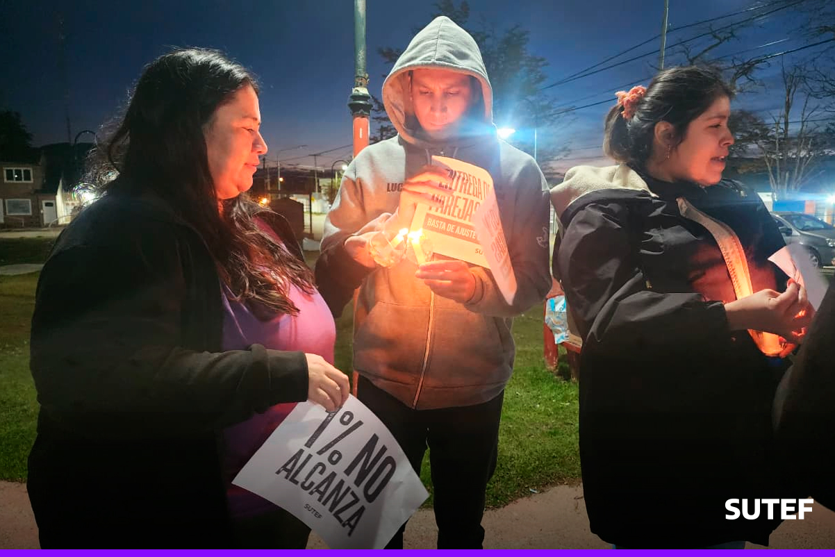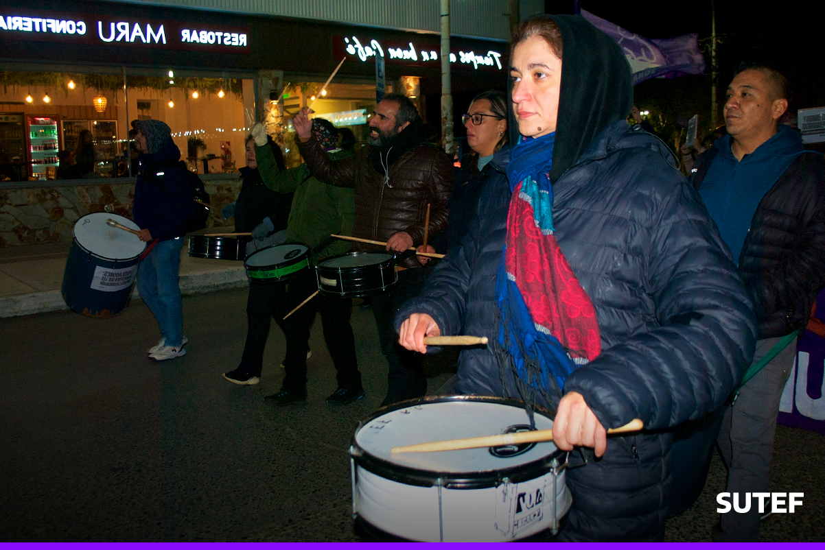 En la noche del viernes 13 de marzo, la docencia fueguina volvió a manifestarse en Río Grande, Tolhuin y Ushuaia con carteles, antorchas, batucada y acompañados de familias.