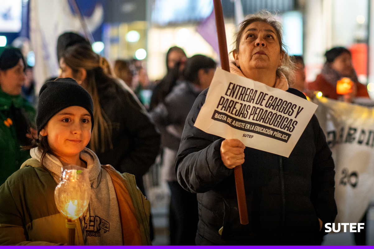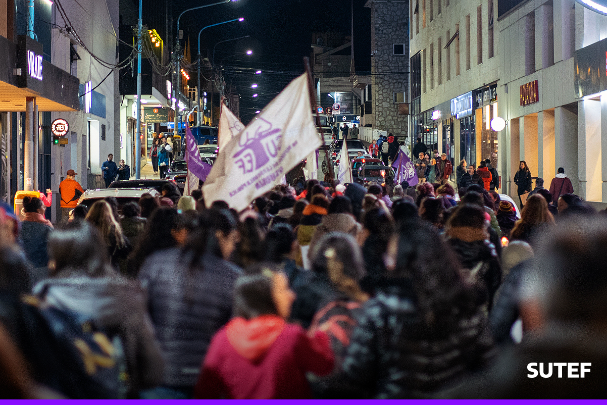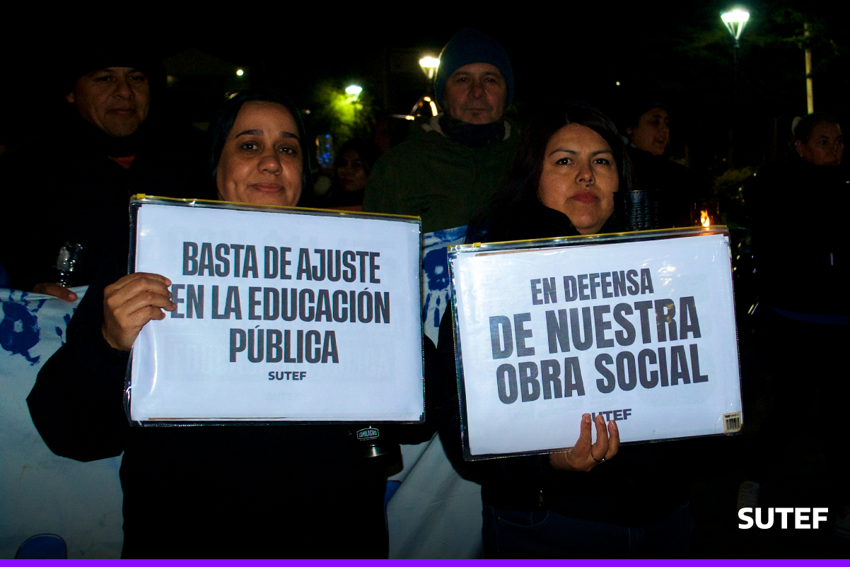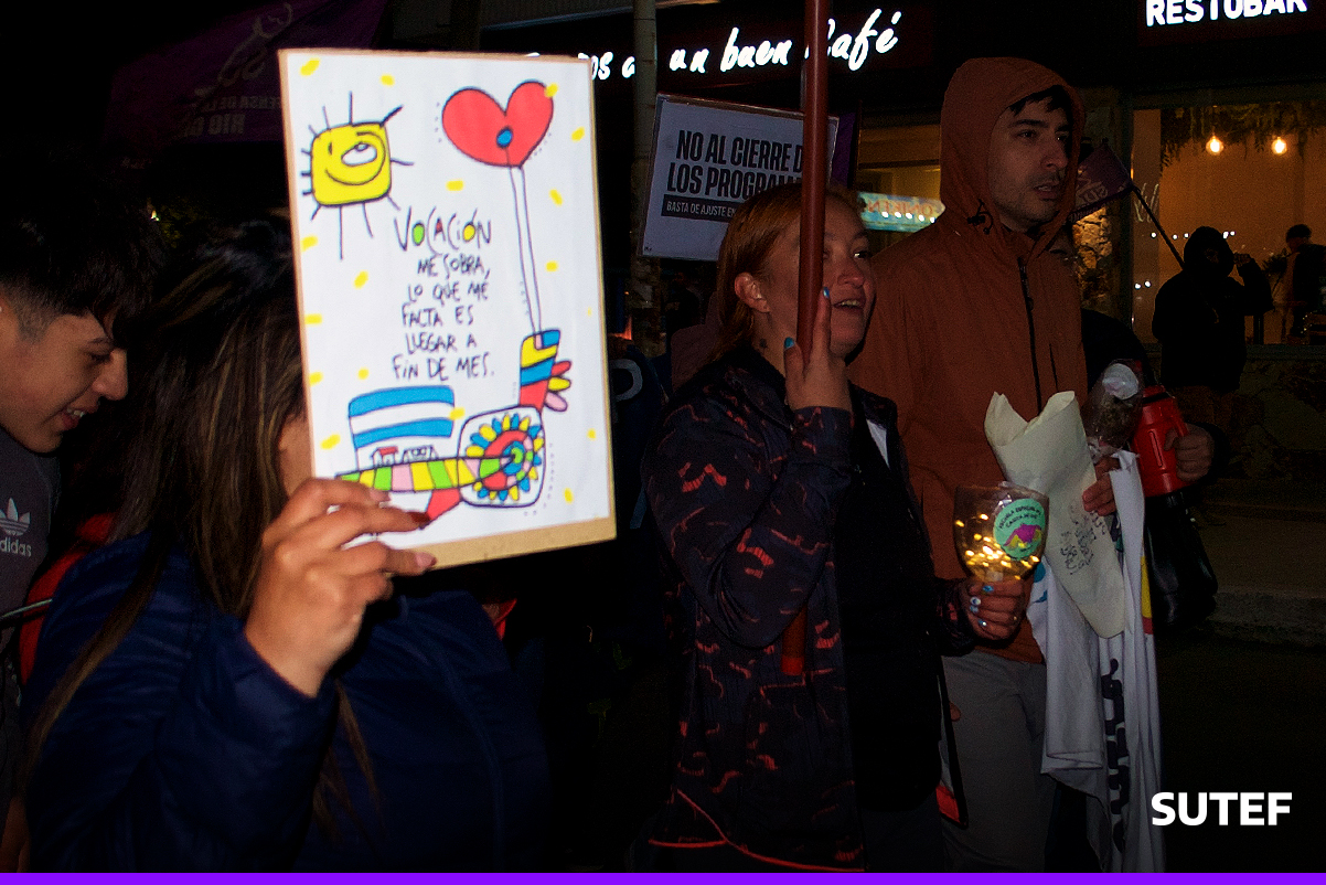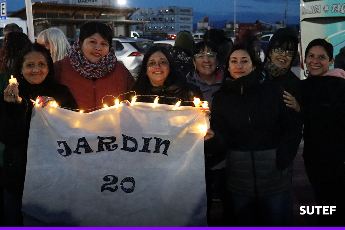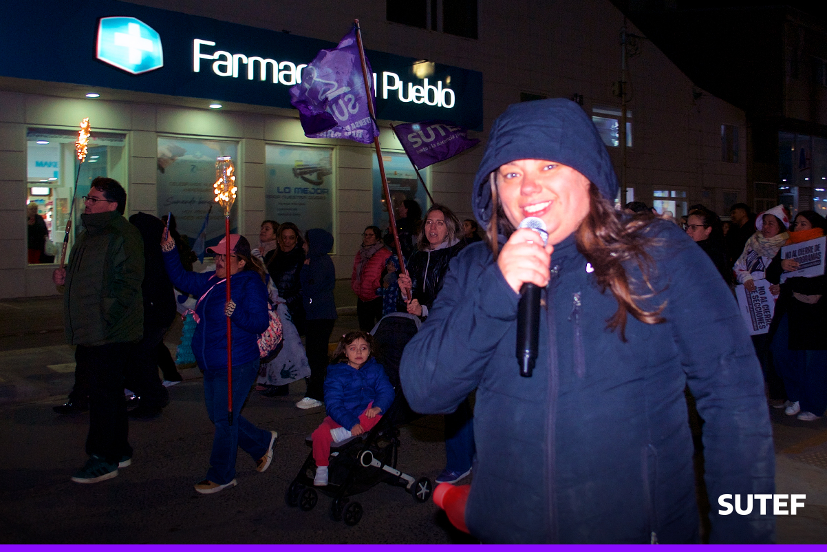 En la noche del viernes 13 de marzo, la docencia fueguina volvió a manifestarse en Río Grande, Tolhuin y Ushuaia con carteles, antorchas, batucada y acompañados de familias.