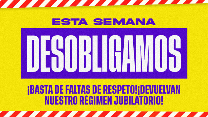 📣 Con unidad y masividad protagonicemos en la calle la recuperación de nuestro régimen jubilatorio sumate a las desobligaciones diarias en las tres ciudades a partir del lunes 26 de septiembre.