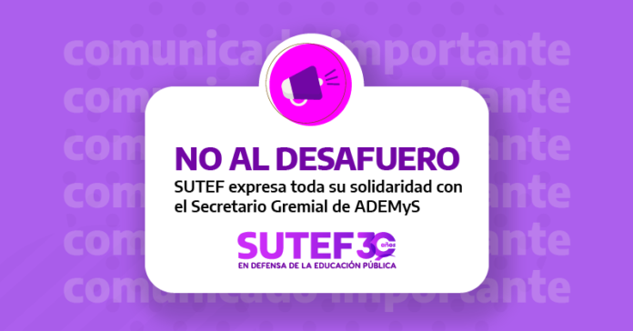 El primer Congreso Provincial de Delegadas y Delegados del SUTEF resolvió solidarizarse con el Secretario Gremial de la Asociación de Docentes de Enseñanza Media y Superior (ADEMyS), de la Ciudad Autónoma de Buenos Aires.
