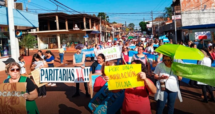 Asimismo, uno de los reclamos centrales es que la economía productiva se encuentra atacada por un plan extractivista y como consecuencia de ello, docentes y estudiantes están migrando hacia Brasil. De igual manera, teniendo en cuenta los bajos salarios, la docencia ni siquiera puede trasladarse a sus puestos de trabajo.