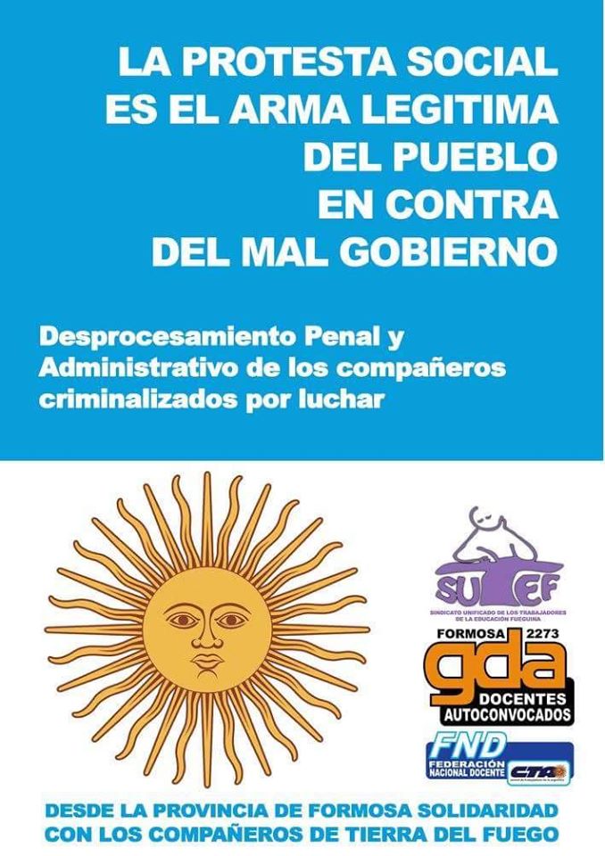 NoticiasSolidaridad desde Formosa Solidaridad desde Formosa publicado el 27 octubre, 2015 FacebookTwitterPinterestWhatsAppEmailImpresiónTelegramCopy URL Últimos artículos Comunicados / Informes / Noticias SUTEF solicitó la continuidad de las horas cátedra de docentes en toda la provincia El Sindicato Unificado de Trabajadoras y Trabajadores de la Educación Fueguina (SUTEF) presentó una... 17 diciembre, 2025 Comunicados / Informes / Noticias 18/12 – Turno tarde: desobligamos y movilizamos contra la reforma laboral En el marco de la jornada nacional de lucha convocada para el jueves 18... 16 diciembre, 2025 Más publicaciones Noticias Se conformó el Frente Nacional Democrático por la Educación Pública En un contexto de crisis educativa y laboral, se llevó a cabo el primer... 15 diciembre, 2025 Noticias SUTEF denuncia falta de instrumento legal y exige al Ministro garantías laborales para el Jardín nro. 27 El pasado martes 21 de octubre, el Sindicato Unificado de las Trabajadoras y Trabajadores... 27 octubre, 2025 Noticias Agenda gremial ️ Lunes 8 y martes 9 de septiembre Asamblea o desobligación interna en los tres... 8 septiembre, 2025