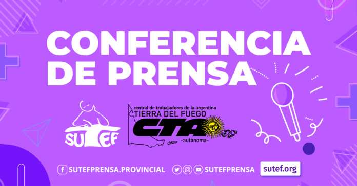 El Sindicato Unificado de las Trabajadoras y Trabajadores de la Educación Fueguina, SUTEF, comunica que el martes 22 de marzo a las 10:00 hs. se realizará una conferencia de prensa en la Seccional de la ciudad de Río Grande, sede de Fagnano 1145.