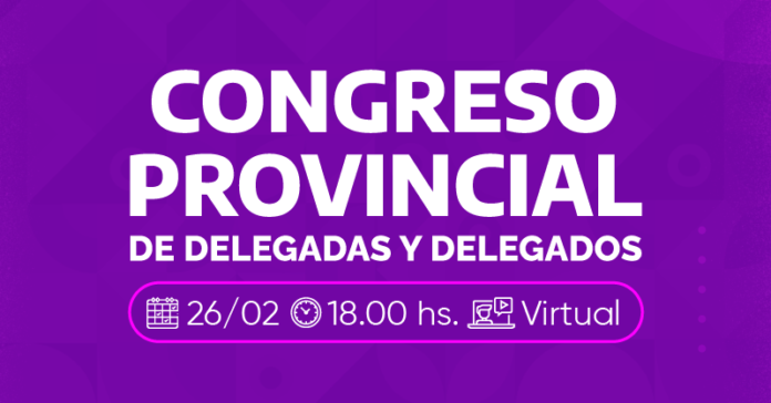 Se convoca este domingo 26 de febrero, a las 18 hs., a Congreso Provincial de Delegadas y Delegados para recibir, analizar y debatir la propuesta salarial que el Ejecutivo se comprometió a presentar.