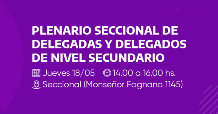 SUTEF convoca a Plenario Presencial de Delegadas y Delegados del Nivel Secundario de la ciudad de Río Grande el jueves 18 de mayo de 14 a 16 hs. en la Seccional, Monseñor Fagnano 1145 con el objetivo de trabajar sobre el siguiente temario: