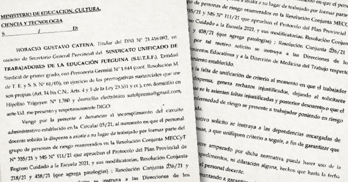 En nota presentada en el Ministerio de Educación, se denuncia la dilación y rechazos debido a la falta de unificación de criterios de las Direcciones de los Establecimientos Educativos y la Dirección de Medicina del Trabajo.