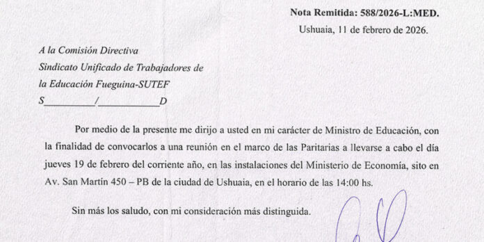 ❗ En el mediodía de hoy, el Sindicato Unificado de las Trabajadoras y Trabajadores de la Educación Fueguina recibió la notificación de convocatoria a mesa paritaria salarial.