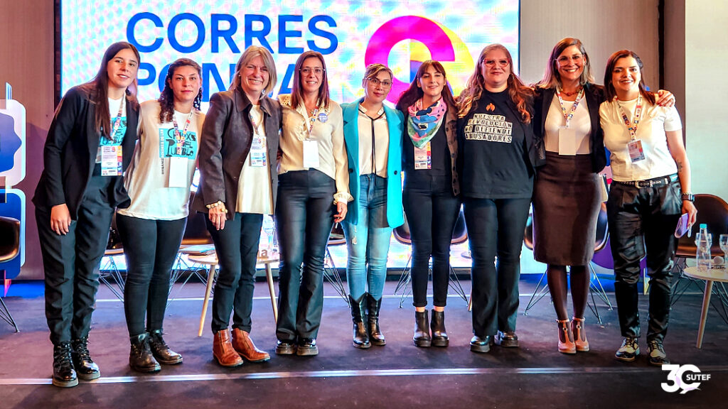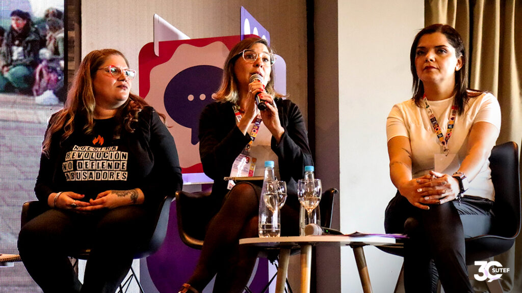 En representación del SUTEF, expusieron las compañeras delegadas y mujeres de comisiones directivas Caterina Mazza, Noel Brallard y Verónica Sidera, quienes convocaron a la docencia a protagonizar los debates, la construcción y desarrollo de nuevos materiales pedagógicos para abordar en las aulas diversos temas.