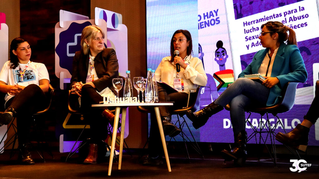 El Sindicato Unificado de Trabajadoras y Trabajadores de la Educación Fueguina, SUTEF, fue convocado por la organización del Congreso para participar de la mesa “Intervenciones comunitarias” y presentar el cuadernillo “Herramientas para la lucha contra el Abuso Sexual hacia Niñeces y Adolescencias”.