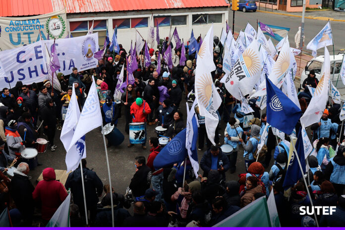 Este miércoles 11 de febrero, el Sindicato Unificado de las Trabajadoras y Trabajadores de la Educación Fueguina (SUTEF) adhirió al paro nacional convocado por las centrales sindicales CTA Autónoma y CTA de los Trabajadores para rechazar la ofensiva del Gobierno Nacional que pretende aprobar en el senado la reforma laboral regresiva, modificar la ley de Glaciares y bajar la edad de imputabilidad; asimismo, para exigir al Gobierno de la Provincia la urgente convocatoria a paritarias.