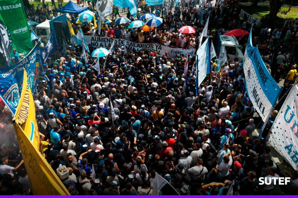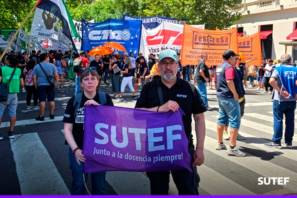 En Buenos Aires, el secretario general de SUTEF participó de la cabecera de la movilización al Congreso de la Nación convocada por el Frente Sindical de Unidad (FreSU), integrado por las dos CTA y gremios de la CGT como la UOM, la Federación Aceitera, la Asociación de Pilotos de Líneas Aéreas y más de 100 sindicatos de todas las centrales obreras.