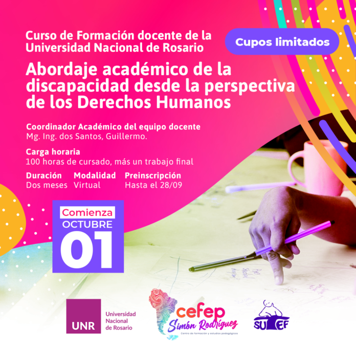 Desde el SUTEF y su Centro de Formación y Estudios Pedagógicos “Simón Rodríguez” (Cefep), en convenio con la Universidad Nacional de Rosario, invitamos a toda la docencia fueguina a realizar el curso virtual denominado: “Aulas para la convivencia. Abordaje académico de la discapacidad desde la perspectiva de los Derechos Humanos”.