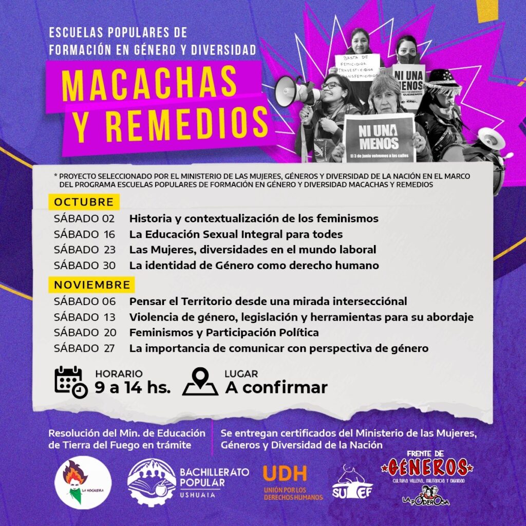 Es un Proyecto seleccionado por el Ministerio de las Mujeres, Géneros y Diversidades de la Nación en el marco del Programa Escuelas Populares de Formación en Género y Diversidad «Macachas y Remedios».